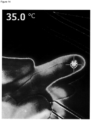 - Irradiation of the body part with VIS/NIR radiation results in an enhanced self-emission of IR radiation from said body part due to local energy absorption, which causes a local increase in temperature.