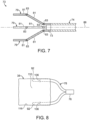 - Suture 96 is held in place at opening 98 of stent graft 38 by wire 100 extending through suture 96, and prevents longitudinal collapse of stent graft that would otherwise occur by friction between stent graft 38 and arterial wall during longitudinal positioning that includes proximal movement (toward the clinician) of guidewire catheter 24 and apex capture assembly 58.