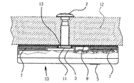 木製、アルミドアーの場合は、図4、図5に示すように、鉄板8のバーリング穴13をドアスコープ2のフランジ部に合わせ、ねじ9で、木製、アルミドアー12に固定する。上記に示す鉄製ドアー1と同様に使用できる。磁力はドアーの開け閉め、地震等の振動に耐える強さとする。又、ドアスコープは既設の魚眼レンズ式でもよく、広角レンズ等に交換又は新設しても良い