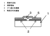 基板1は,表面が絶縁性を有し,加熱機能を備えているものであれば,いずれのものも使用することができ,材料や構成等を限定するものではない。しかしながら,基板の表面粗さは0.01〜1μmの間であることが好ましい。