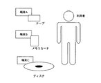 上記のように、一人の利用者が持ち運ぶ複数の電子機器は、それぞれが記録装置及び記録媒体を有し、それぞれにデータを格納している。よって、図56に示されるように、利用者は、データ記録という同じ機能を重複して携帯することになり、そのために次のような課題が発生する。