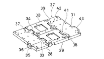 前記分配部ベース28の一辺には2箇所に凸部33,34が形成され、又前記分配部ベース28の対辺には凸部35が形成されている。前記電力増幅部ベース29,30の一辺及び対辺にはそれぞれ凹部36,37及び凹部38,39が形成されている。前記合成部ベース31の一辺に凸部41,42を形成し、対辺に凸部43を形成する。
