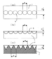 しかし、レーザー加工によるブレイクラインでは、図3(a)様にセラミック基板1に形成したブレイクラインを形成している個々の孔3が円型である為に、ブレイクした際、図3(b)の平面図に示す様に常に円の中心から半径分の大きさのノコギリ状の凹凸部として孔3が製品の端部に残ることになり、近年要求されている高密度実装化の進展に伴う、基板の多数個取りや高精細化で必要な高い生産性と共に位置精度や品質の面で高い信頼性を得る事が応出来なかった。