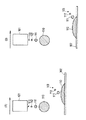 ストッパ7cは、基体7aの半径方向周端に半径方向外方向きに突出して設けられ、操作レバー7の回転によってインクキャリッジ1の突起1cに当接する当接位置とインクキャリッジ1の突起1cに当接しない非当接位置とに選択的に変換される。このストッパ7cの突出量は、基体7aのインクキャリッジ主走査方向の厚みと一致している。係止片7dには、弾性部材9が係止されている。この弾性部材9は、操作レバー7を図6の(A)に示す位置、又は、図6の(B)に示す位置のいずれかに選択的に停止させるように付勢する。ストッパ7cは、操作レバー7が図6の(A)に示す位置に停止している状態ではインクキャリッジ1の突起1cとの当接位置に露出せずに非当接位置に変換され、操作レバー7が図6の(B)に示す位置に停止している状態ではインクキャリッジ1の突起1cに当接する位置に露出する。この場合、操作レバー7が図6の(A)に示す位置に停止している状態、つまりインクキャリッジ1の突起1cとの当接位置にストッパ7cが露出せずに非当接位置に変換されている状態では、インクキャリッジの主走査方向一側への走査時にインクキャリッジ1の突起1cがインクジェットプリンタ本体51の一方の側壁に当接するようになっている。また、インクキャリッジ1の突起1cの突出量は、ストッパ7cの突出量(基体7aの厚み)よりも大きく設定されている。