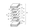 (3)そして、内部電極パターン配設シート3a,3b、位置ずれ検出パターン配設シート5、コイルパターン配設シート8、導体パターンが配設されていない誘電体シート1a及び磁性体シート6aを、図1に示すような所定の順に積み重ね、圧着した後、所定の寸法にカットし、チップ型未焼結積層体10を得る。 なお、実際には、マザー積層体を形成し、これを所定の位置でカットして個々のチップ(未焼結積層体)に分割して多数個のチップを同時に製造する、いわゆる多数個取りの方法が用いられる。図1はカットされた後のチップ型未焼結積層体の分解斜視図である。