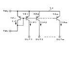 そして、このような電流指定型の駆動方式を採用したディスプレイに適用されるデータドライバの具体的な構成としては、例えば、図28に示すように、電流路の一端側(エミッタ)が電源端子TMpに接続されるとともに、電流路の他端側(コレクタ)が基準電流入力端子TMrに接続されたトランジスタTPrと、電流路の一端側(エミッタ)が共通電源ラインLpを介して上記電源端子TMpに共通に接続されるとともに、電流路の他端側(コレクタ)が個別の出力端子OUT1、OUT2、・・・OUTmに接続され、かつ、各制御端子(ベース)が上記トランジスタTPrの制御端子(ベース)に並列的に接続された複数のトランジスタTP1、TP2、・・・TPmからなるカレントミラー回路を基本構成として備えた定電流生成供給回路を良好に適用することができる。 As a specific configuration of a data driver applied to a display employing such a current designation type driving method, for example, as shown in FIG. 28, one end side (emitter) of a current path is a power supply terminal TMp. And the other end side (collector) of the current path is connected to the reference current input terminal TMr, and the one end side (emitter) of the current path is connected to the power supply terminal TMp via the common power supply line Lp. The other end side (collector) of the current path is connected to the individual output terminals OUT1, OUT2,... OUTm, and each control terminal (base) is connected to the control terminal (base) of the transistor TPr. ) With a current mirror circuit composed of a plurality of transistors TP1, TP2,... TPm connected in parallel as a basic configuration It can be favorably applied supply circuit.
