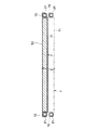 横架材2は、図1及び図2等に示すように、長尺のものであり、本実施形態においては、角パイプ状の横架材要素21を2本用いて構成している。各横架材要素21は、所定の長手寸法に切断することによって長手方向に沿って等断面形状をなすようにしたものであり、主として紙素材からなる。横架材要素21の縦断面形状と、前記第2支柱要素12の縦断面形状とを略同一形状に設定している。各横架材要素21は略同一の長手寸法を有し、長手方向両端部にエンド部材3を取り付けている。