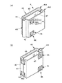 各半割部材41、42の他方の延出面部41b、42bには、ヒンジ部4Hを構成する第1ヒンジ要素4h1、第2ヒンジ要素4h2をそれぞれ設けている。 以上の構成を有する各半割部材41、42を、各ヒンジ要素4h1、4h2を相互に嵌合させることにより、上方及び下方を開放させてなる平面視略矩形筒状のコーナー部材4が形成される。このコーナー部材4は、各ヒンジ要素4h1、4h2によって形成されるヒンジ部4Hを利用して、図9(a)に示す開成状態と、同図(b)に示す閉止状態との間で開閉動作可能に構成している。しかして、このコーナー部材4は、各半割部材41、42の外周面にそれぞれ設けた第1係合部4K、及びヒンジ部4Hに対向する位置に各係合要素4k3からなる第1係合部4Kを有する。すなわち、コーナー部材4の外周面にそれぞれ異なる方向を向くように設けた3つの第1係合部4Kを有するものとなる。また、このコーナー部材4の上方から前記エンド部材3を挿入できるようにコーナー部材4の内周寸法を設定している。さらに、エンド部材3をコーナー部材4の上方から挿入した場合に、エンド部材3のそれ以上の挿入を規制する規制部4Sを設けている。