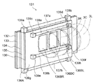 液晶表示装置131は、保護ガラス132、表示板133、液晶パネル134、導光板135、反射フィルム136、白色光源(一般に可視域で発光する光源)である蛍光ランプ137a,137b,138a,138b、ランプホルダ139a〜139h、液晶パネル駆動用のICを搭載したテーブルキャリアパッケージからなり液晶パネル134の端子部に接続したフレキシブル基板(図示せず)等により構成される。この液晶表示装置131は、リール3L,3C,3Rの表示領域より正面から見て手前側(表示面よりも手前側)に設けられている。また、このリール3L,3C,3Rと液晶表示装置131とは、所定の間隔を開けて設けられている。