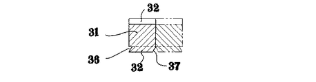 さらに、本発明の接着剤を使用しない無垢木材集成パネル及びこの無垢木材集成パネルに使用する小幅板の第7実施例を図49乃至図61に示してある。図中符号31が内部構造用小幅板で、その表面の長手方向に小幅板の幅寸法の2倍の寸法より僅かに大きい寸法からなる凸部32と,小幅板31の幅寸法の2倍の寸法より僅かに小さい寸法からなる凹部33を小幅板31の幅全部を占めて形成してある。そして、それぞれの凸部32の底部が狭くなるよう、又凹部33の底部が広くなるよう、上記凹部33の小幅板長手方向両側辺に斜めに傾斜する傾斜部35を形成して凸部32と凹部33の底部の寸法を小幅板31の幅寸法の2倍としてある。