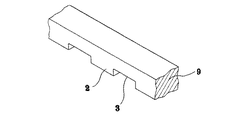 - 上記請求項16に記載の接着剤を使用しない無垢木材集成パネルに使用する小幅板であって、表面に、小幅板の長手方向に小幅板の幅寸法の2倍の寸法より僅かに大きい寸法からなる凸部と、小幅板の幅寸法の2倍の寸法より僅かに小さい寸法からなる凹部を小幅板の幅全部を占めて形成し、それぞれの上記凸部の底部が狭くなるよう、又凹部の底部が広くなるよう、上記凹部の小幅板長手方向両側辺に斜めに傾斜する傾斜部を形成して凸部と凹部の底部の寸法を小幅板の幅寸法の2倍の寸法とする一方、小幅板の裏面の上記表面の凹部と対応する位置に、小幅板の幅寸法の2倍の寸法からなる凸部を形成し、その片側辺に上記傾斜部と同様の傾斜部を形成し、反対側に角を削除した形状の傾斜部を形成してある小幅板。