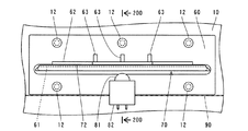 従来のディスクプレーヤ100は、図11に示すように、ディスクプレーヤ100の前面を覆うフロントパネル110と、フロントパネル110に設けられた操作ボタン120と、録画ボタン130と、平板状のアクリルレンズ140とを備えている。また、図12および図13に示すように、アクリルレンズ140の左右の両端部からほぼ同じ距離だけ離れた位置には、光源となる2つの発光ダイオード150が配置されている。アクリルレンズ140は、フロントパネル110の内面から前面に露出するようにディスクプレーヤ100の内部に取り付けられている。このアクリルレンズ140は、録画ボタン130の操作によってディスクプレーヤ100が録画状態にあることをユーザに知らせるために設けられている。また、平板状のアクリルレンズ140は、図12および図13に示すように、入射光を反射する一対の背面部141と、反射した光を出射することにより発光する横長形状の前面部142とを含んでいる。一対の背面部141は、互いに対向するように前面部142に対してV字状に形成されている。