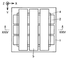 (1)シリコーンラダーポリマーは、図1に示すようにシロキサン結合が梯子状に形成され、側鎖にフェニル基やビニル基や低級アルキル基などの官能基Rを有する。ここで、低級とは、炭素数1〜4の分枝または直鎖状のものをいう。本発明の実施の形態では、絶縁層の材料として、シリコーンラダーポリマーを、例えば官能基にフェニル基をもつポリフェニルシルセスキオキサン(以下、PPSQと表記)を、採用する。このため、絶縁層の膜厚を、耐電圧確保に必要な膜厚である約10μmにすることができる。 (1) The silicone ladder polymer has a siloxane bond formed in a ladder shape as shown in FIG. 1, and has a functional group R such as a phenyl group, a vinyl group, or a lower alkyl group in the side chain. Here, lower means a branched or straight chain having 1 to 4 carbon atoms. In the embodiment of the present invention, a silicone ladder polymer, for example, polyphenylsilsesquioxane (hereinafter referred to as PPSQ) having a phenyl group as a functional group is employed as the material of the insulating layer. For this reason, the film thickness of an insulating layer can be about 10 micrometers which is a film thickness required for withstand voltage ensuring.