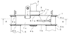 また、ボトムブリッジ1のステアリング軸2を中心とした対称な位置にはフォークパイプの支持筒軸5が下方から挿着されており、これら支持筒軸5はその上端を上板部1aの下面に当て付けて溶接(溶接部6a)されるとともに下板部1bに溶接(溶接部6b)されている。