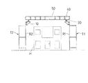 ガーター50は、建物Hを挟んで略平行に架設される一対のレール30,30に架け渡される部材であり、1本の上弦材51及び2本の下弦材52,52を略正三角形の薄板状の梁用プレート53の各々の頂点に接合して構成されている。ガーター50は、両端部が各々ローラー架台40の架台部42に取り付けられている。そして、ガーター50は、両端のローラー架台40,40が略平行なレール30,30に各々装着されることにより、建物上空を走行自在とされる。なお、本実施形態では図6のようなローラー架台40を用いてガーター50を走行自在に構成したが、このような形状に限定されず、レール30に対して走行自在な構成であれば、どのような構成であってもよい。