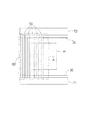 図3に示すように、この仮設足場T1及びT2の内側(建物側)の縦枠材R1及びR2の上端部には、ブラケット10が各々略同一高さに取り付けられている。ブラケット10は、図8に示すように、縦フレーム材11と、縦フレーム材11に固定された略水平な横フレーム材12と、を有して構成されている。縦フレーム材11と縦枠材R1,R2とは単管連結材13によって固定され、横フレーム材12は縦フレーム材11の上端から建物側に向けて延出されている。各々の横フレーム材12の上側には、図8に示すように、断面コの字型のレール支持材20の片方のフランジ面が単管クランプ14を介して固定されている。そして、レール支持材20のもう一方のフランジ部の先端にはレール30が固定されている。