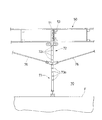 (8)そして、レベル微調整を行った後、ガーター用束の下端とガーター50の両端のローラー架台4とを、各々ブレース材76によって接合し、張力を与える。これによりガーター50のたわみが改善され、ガーター50が略直線状態に保持される。