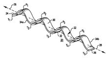 本発明の実施例は、断面あるいは全体がほぼ正弦波形の少なくとも一つの硬質リボンを有することを特徴とする。各リボンは、第1の端および第2の端(これにより長手方向軸が決まり)を有する本体部分と、第1および第2の主面と、2つの横側面とを備える。前記リボンの性質は単純なものから複雑なものまで変えることができ、従来のものを本発明に用いることができる。