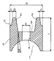 従来、この種オイルリングは、トラック、バス等のディーゼルエンジンに使用され、幅B×厚さTが(3.5〜5.0)mm×(2.5〜3.0)mmである断面寸法の大きいものであった。近年、オイルリングは、小型の内燃機関(ディーゼルエンジンやガソリンエンジン)にも使用され始め、断面寸法の小さいものが必要になり、これに適した溝付異形線材が求められている。 Conventionally, this kind of oil ring is used for diesel engines such as trucks and buses, and has a cross section of width B × thickness T (3.5 to 5.0) mm × (2.5 to 3.0) mm. The size was large. In recent years, oil rings have begun to be used for small internal combustion engines (diesel engines and gasoline engines), and those having a small cross-sectional dimension are required, and there is a demand for a grooved deformed wire suitable for this.