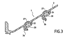 図2に示されるように、実質的に円筒状のインサート20は、HICの間に適正な位置にフック3aまたは3bを保持するために使用される。説明された例においては、円環状に対称であるそのようなインサート20は、フック3aまたは3bに形成された円形開口部23を通過するための円筒状本体24を備え、かつ第1の端部に、フック3aまたは3bに対する当接部となるように、開口部23の直径よりも大きい直径を有する円環状肩部22を備えている。例においては、本体24の直径は、開口23のそれよりも非常にわずかに小さく、インサートとフック3aまたは3bとの間の間隔が、フックの係合が外れることなく、かつインサート20の固定位置に残ることを確実にするためにさらに小さい。開口部23に圧入として取り付けられるべくインサート20を設けることも可能である。