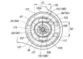 請求項2は、外筒を軸線方向に分割した複数の分割体で構成し、軸線から外筒小径部までの最小距離を、軸線から内筒大径部までの最大距離より小さくしたことを特徴とする。 A second aspect of the present invention is configured by a plurality of divided bodies obtained by dividing the outer cylinder in the axial direction, and the minimum distance from the axis to the outer cylinder small-diameter portion is smaller than the maximum distance from the axis to the inner cylinder large-diameter portion. And