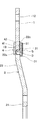 図8に示すように、付勢手段は、略U字状に成形した板ばね3であり、その両自由端は水平に屈曲されてフランジ部31が形成されている。板ばね3は、そのU字状に成形した部分から、突出部13の先端と凹部22cの底面との間に軸方向から挿入され、フランジ部31が、突出部13の軸方向の面11及び軸部22の軸方向の面22aの少なくとも一方に当接すると位置決めされるようにしている。この場合、U字状に屈曲させた部分が挿入方向と反対側に突出しないように、板ばね3の高さが定寸されている。