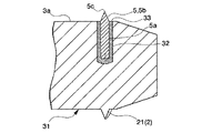 また、切り刃部5bとしては、例えば、ねじ山21aの断面形状に対応する三角形板状に形成されたものも採用可能であるが、切り刃部5bの形状が円錐状以外の場合は、シャンク部5aを孔32に挿入した切り込みチップ5を孔32の中心軸線回りに回転させることによって切り刃部5bの向きを調整してから、シャンク部5bを孔32内に固定する。円錐状の切り刃部5b(円錐部5b)であれば、切り刃部5bの向きを調整する作業は不要であるといった利点がある。