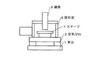 (1)除振を行う場合と制振を行う場合との2つの場合に応じて、制御手段21は試料室5と空気ばねとからなる系に加える減衰力を切り替えるだけなので、制御が容易で、チューニングも不要で、長期間性能を維持することが可能で、予測外の力が作用した場合に制御不能とならない。更に、高価なセンサや複雑な制御回路等が不要となるので、安価である。