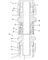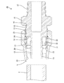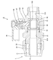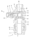 バルブ保持体72には、軸線を上下方向に向けた円形の保持孔73が、バルブ保持体72を上下方向に貫通するとともに、バルブ保持体72の中心孔72Hに連通する形態で形成されている。保持孔73内には、円柱形をなす弁体74が、上下方向の軸線を中心とする回転を許容され、且つバルブ保持体72(保持孔73)に対する上下方向への相対変位を規制された状態で嵌合されている。