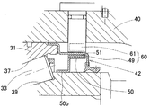 磁気センサ31は、ホール素子または磁気抵抗素子等からなり、センサホルダ45内に樹脂モールド等によって埋め込み状態に設けられている。この磁気センサ31は、ナックル40に設けられたセンサ取付孔46内にセンサホルダ45を嵌合状態に挿入することにより、ナックル40に取付けられる。センサホルダ45は、止めねじ等の止め具47によりナックル40に固定され、その内径側端はシール手段12の芯金12の外径面に近接する。センサホルダ45とセンサ取付孔46の内径面との間は、Oリング等の密封部材48によって密封される。