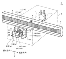 図1は、第1実施形態に係る光学式のインクリメンタル型変位測定装置1の概略構成を示す斜視図である。変位測定装置1の具体例としては、例えばリニヤスケール、リニヤゲージ、デジタル表示付ダイヤルゲージがある。変位測定装置1は、装置1の測定軸Xに沿って延びた長尺状のメインスケール3と、スケール3に対して往き方向(一方の方向の一例)及びこれと逆の戻り方向(他方の方向の一例)に測定軸Xに沿って移動可能なセンサヘッド5と、を備える。