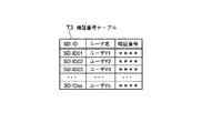 暗証番号テーブルT3は、図5に示すように、媒体識別子SD−ID毎に、ユーザID及び暗証番号が記憶されたものである。この暗証番号テーブルT3は、例えばセキュア記憶媒体SDを紛失した場合でも、通常のパスワード認証を行なうことにより、セキュア記憶媒体SDの不正使用を阻止するためのものである。但し、暗証番号テーブルT3を省略しても、定期的にサービス権利データp11,…を更新するので、砂丘唖記憶媒体SDの紛失時の被害を最小限に留めることが可能である。