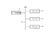 図1は、ネットワーク構成を概略的に示す図である。例えば事務処理用のオフィスコンピュータ装置であるデータ処理装置1及び例えばレーザプリンタであるプリンタ2,3,4をLAN(ローカル・エリア・ネットワーク)5を介して通信可能に接続している。