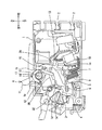 図1において、前後、左右及び上下は矢印で示している。図1に示すように、上記電磁石19は鉄、鋼などの強磁性体をU字溝形に曲げた吸着部材23を備え、この吸着部材23の溝側壁の端面が駆動片20の被吸着部22を吸着する吸着面23aを構成する。そして、この吸着部材23の内側に形成される溝24に、例えば合成樹脂からなる絶縁チューブ25と、この絶縁チューブ25に挿通された内部回路の一部分が挿入される。