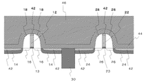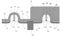 次に、図2に示すように、P−MOSトランジスタ10およびN−MOSトランジスタ20双方のゲート電極12,22およびソース・ドレイン領域14,24上にモノシリサイド膜としてNiSi膜42を形成する(シリサイド膜形成工程)。ただし、NiSi膜42は、ゲート電極12,22およびソース・ドレイン領域のうち何れか一方にのみ形成してもよい。