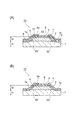 この場合、双方の第1及び第2電極(パッド)が、素子の一方面(露出表面、半導体領域)に電気的に接続されているため、素子を小型化することができる。第2半導体基板の周囲の領域はエッチングされているので、第2半導体基板の形状は「メサ」を構成し、エッチングされた部分の第1半導体基板は完全に露出している。2枚の半導体基板を貼りあわせた場合、界面に酸化物が局所的に介在することがあるが、エッチングされた部分の酸化物は除去される。したがって、この部分の平坦性が向上し、電極の取り付け精度が向上する。 In this case, since both the first and second electrodes (pads) are electrically connected to one surface (exposed surface, semiconductor region) of the element, the element can be reduced in size. Since the area around the second semiconductor substrate is etched, the shape of the second semiconductor substrate forms a “mesa”, and the etched portion of the first semiconductor substrate is completely exposed. When two semiconductor substrates are bonded together, an oxide may be locally present at the interface, but the etched portion of the oxide is removed. Therefore, the flatness of this portion is improved, and the electrode mounting accuracy is improved.