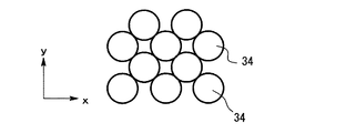 貫通孔の形状は円、楕円、長方形、正方形、三角形、6角形など任意である。貫通孔の配置は、整然と整列させて配置(以下、この配置を「整列配置」という)しても、ランダムに配置(以下、この配置を「ランダム配置」という)しても良い。整列配置としては、碁盤の全ての枡目に配置する方法、碁盤の枡目に縦と横方向には1升置きに配置し、斜め方向には連続するように配置する方法などがある。 The shape of the through hole is arbitrary, such as a circle, an ellipse, a rectangle, a square, a triangle, a hexagon. The arrangement of the through holes may be arranged in an orderly manner (hereinafter, this arrangement is referred to as “alignment arrangement”) or randomly (hereinafter, this arrangement is referred to as “random arrangement”). As the alignment arrangement, there are a method of arranging all the grids of the grid, a method of arranging the grids every other grid in the vertical and horizontal directions, and arranging them continuously in the diagonal direction.
