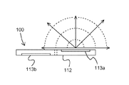 次に、本発明の実施例2について図面を用いて説明する。図5は、本実施例2による無線モジュール100の送信用平面アンテナと受信用平面アンテナとの配置を示す断面図である。本実施例1による無線モジュール100は、内部に導波路が形成されている基板112と送信用平面アンテナ113aと受信用平面アンテナ113bとを含む。図1(c)に示すように、送信用平面アンテナ113aと受信用平面アンテナ113bとを同一平面上に同一方向を向いて設けると漏話等の混信が生じてしまうため、本実施例2による無線モジュール100は、送信用平面アンテナ13aと受信用平面アンテナ13bとを基板12に関して相対する面に配置する。