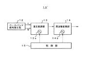 この問題を解決するために、例えば図14に示すように、信号発生装置10′を、ベースバンド信号発生部12、直交変調部13および周波数変換部14で構成し、制御部15によって、直交変調部13の局発回路13aや周波数変換部14の局発回路14aの周波数を切り替えることも考えられる。