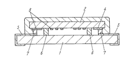 図3に示すごとく、基板1は、その上面に弾性表面波チップ2を有する。この弾性表面波チップ2は、一方の面に櫛形電極3を有し、この櫛形電極3を有する面が基板1側になるように載置したものである。櫛形電極3は、入出力電極4を介して外部取出電極5と電気的に接続されている。外部取出電極5は、基板1の弾性表面波チップ2側から、その反対側に電極を取出すように形成した。