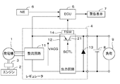 ステップS15では、出力電圧VACGが判定電圧VREF以上であるか否かを判別し、この答が肯定(YES)であるときは、正常である判定して直ちに本処理を終了する。VACG<VREFであるときは、出力電圧VACGが低下する故障が発生していると判定し、負荷9における消費電流を低減させる制御を行う(ステップS16)。具体的には、車両の走行機能に支障を与えない装置、例えばオーディオ装置などのアクセサリ装置への電源供給を停止する。あるいは、空調装置のファンを間欠動作するように制御するか、ファンの作動を停止させるようにする。 In step S15, it is determined whether or not the output voltage VACG is equal to or higher than the determination voltage VREF. If the answer to step S15 is affirmative (YES), it is determined that the output voltage VACG is normal and the process is immediately terminated. When VACG <VREF, it is determined that a failure has occurred in which the output voltage VACG is reduced, and control is performed to reduce the current consumption in the load 9 (step S16). Specifically, power supply to an apparatus that does not hinder the traveling function of the vehicle, for example, an accessory apparatus such as an audio apparatus, is stopped. Alternatively, the fan of the air conditioner is controlled to operate intermittently, or the operation of the fan is stopped.