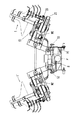 第2伝動ケース20,20´は、畦形成装置6,6´を形成する円錐ディスクの回転軸を駆動するものである。第3伝動ケース21,21´は盛土装置5,5´を形成する掘削刃の回転軸を駆動する。