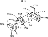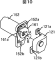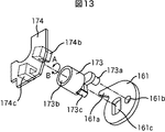 次に、図8乃至図15を参照して、錠105の構成について説明する。尚、図8は、錠105の鍵穴151の設けられた方向からの斜視図であり、図9は、錠センサ121からの斜視図である。また、図10は、錠105から錠センサ121を取り外したときの錠105の錠センサ121が接続される方向からの斜視図である。図11は、錠センサ121を分解したときの錠105の錠センサ121が接続される方向からの斜視図である。図12は、錠センサ121の検出部174、接続部173、および、カム161を分解したときの鍵穴151の設けられた方向からの斜視図である。図13は、錠105の錠センサ121の検出部174、接続部173、および、カム161を分解したときの錠センサ121が接続される方向からの斜視図である。図14は、接続部173の凸部173aを正面にした向きにおける側面図である。図15は、開錠センサ174bの側面図である。