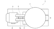 モータ3は、振動付与手段1の駆動源を成し、図示しない電源に接続されることにより、一定の回転数で出力軸3aを回転可能とされたものである。かかる出力軸3aの先端は、減速機4に接続されており、モータ3の駆動力が当該減速機4にて減速されつつ出力軸4aに伝達されるよう構成されている。この減速機4の出力軸4aは、上方に延設されており、ベアリング8を有したクランク4bが先端に形成されている。