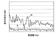 図3に、膜破断が無いときの音Aと、膜破断が発生したときの音Bとを測定した例を示す。膜破断が発生した場合には、広い周波数域で振幅に大きな差異が生じる。浄水設備においては、ポンプやインバータ等の騒音を発する機器が存在するが、これらの機器が発する騒音については、振幅の大きい周波数域は限られている。したがって、判定装置28において、前記機器による騒音の影響を受けない周波数域をあらかじめ設定し、この周波数又は周波数範囲で漏洩の判定を行うことにより、非常に高い精度で膜破断の検知を行うことが可能となる。また、各音響センサ26からの信号を判定手段28で別個に処理することにより、膜破断が発生した膜モジュール11を容易に特定することができる。