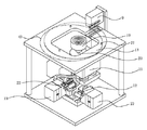 また、従来の生産工程中における、その都度の円盤状物の位置決めは、図25に示す如き位置決め装置(専用機)10を用いて行っている。図25に示す搬送装置2においては、搬送中のウエハ13の軌道がカセット6や各出入口の縁と干渉するのを防止するために、搬送ロボット4とは別途の円盤回転式位置決め装置10にウエハ13を一旦引き渡して正常位置に位置決めした後、再び搬送ロボット4がウエハ13を受け取って目的場所へ搬送するのが通常である。
