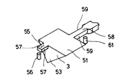さらに、キャビティ3に樹脂を注入するための樹脂流路であるゲート58(図9参照)も、オーバーフロー55と同様に、図8の紙面奥行き方向に延び、且つ離型方向に対して平行な両側面のがイド面59を有している。このゲート58には、成形品を突き出するためのエジェクタピン61が対向するように配置されている。図8において、符号58は、固定側型板2と可動側型板4によって構成されるパーティング面である。