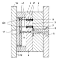 図1に示す成形金型において、固定側取付板1及び固定側型板2によって固定側金型が構成されている。また、固定側型板2と可動側型板4とが対向することにより、成形用のキャビティ3が形成される。