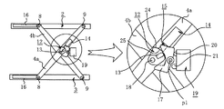 (b)前記X型リンクの一方のリンクに対して揺動自在に配設され、外周縁に歯が形成され、側面に作動片が突出させて形成された回転子と、