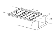図1ないし図5において、13は側溝本体1の上方に左右対向して形成された床版搭載部である。また17は残存型枠板であり、この残存型枠板17は前記側溝本体11の前記床版搭載部13の上面に載置され、構築すべき側溝用床版としての床版21の下面に捨型枠材として使用されるものであり、この残存型枠板17は側溝本体11の開口部15を塞ぐようになっている。